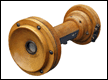 aus Nussbaumholz mit aussenliegenden Anschlussklemmen und 2 aussenliegenden