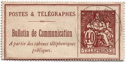 Marke für Telephongespräche auf kurze Entfernungen ohne Zeit zu 40 Centimes , rotbraun.