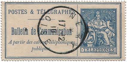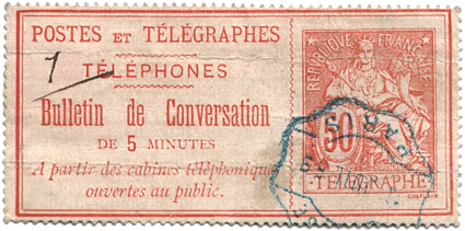 Marke für Telephongespräche von 5 Minuten auf kurze Entfernungen zu 50 Centimes ( Ortsverkehr ).