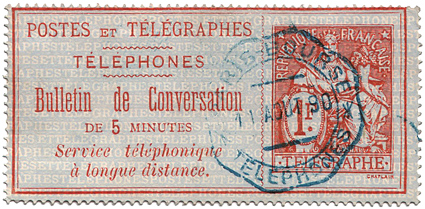 Marke für Telephongespräche von 5 Minuten auf lange Entfernungen zu 1 Franc ( Fernverkehr ).