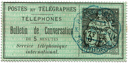 Marke für Telephongespräche im Internationalen Verkehr zu 3 Franc .