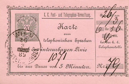 gestempelt Wien Praterstrasse am 26.3.1889